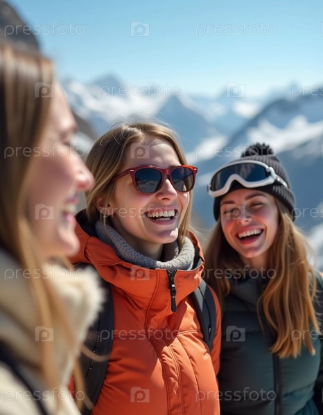 Друзья наслаждаются солнечным днем в горах