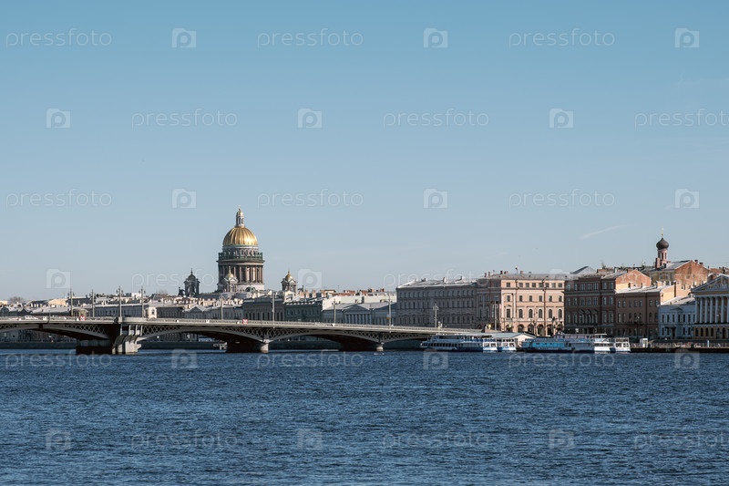 Санкт-Петербург, Россия - 21 марта 2026 года Собор святого Исаака через реку Неву