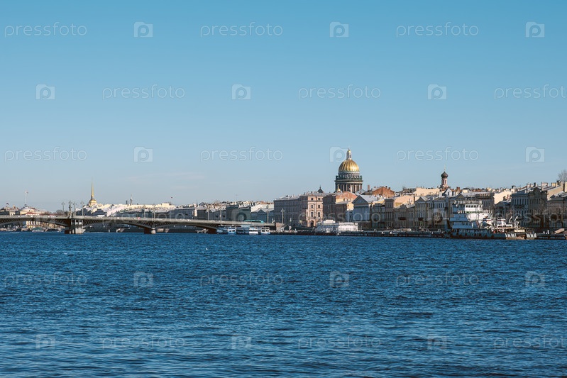 Санкт-Петербург, Россия - 21 марта 2026 года Собор святого Исаака через реку Неву