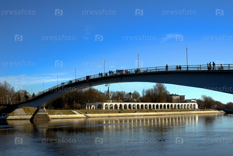 Вид на Аркаду Гостиного двора через Горбатый мост. Великий Новгород. Россия. Март 2026г