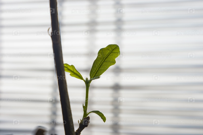 Дубовое растение на подоконнике