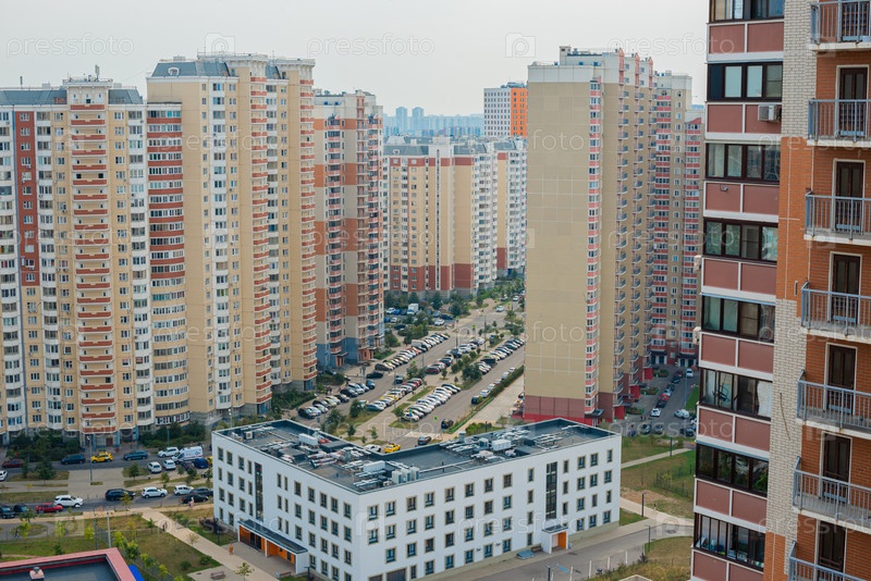 Современные многоэтажные жилые дома в спальном районе крупного города