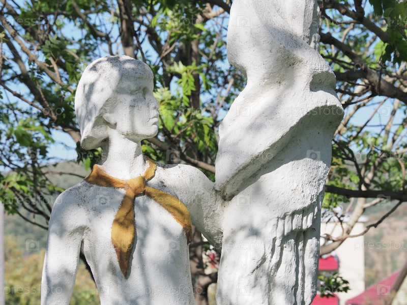 Скульптура "пионерка с флагом".Томари.Сахалин