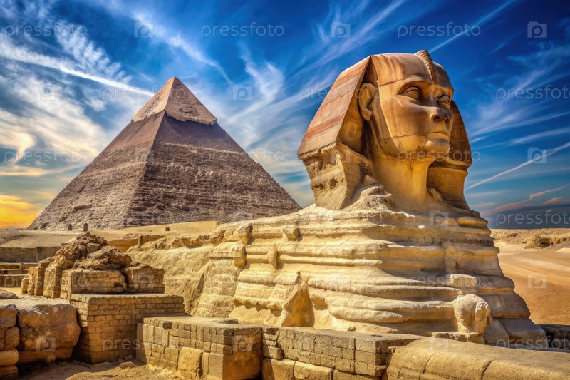 Великий Сфинкс и пирамида Гизы в Египте. Генеративный искусственный интеллект