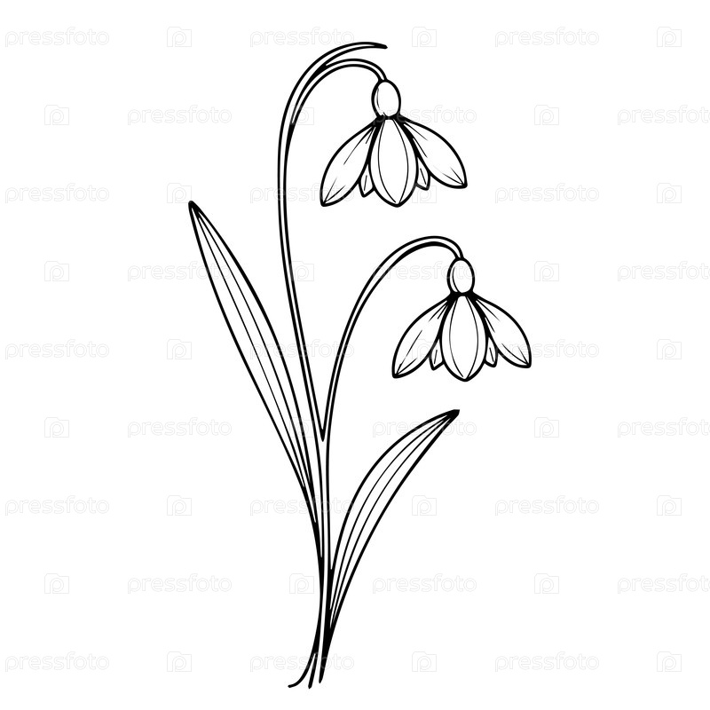 Снеговик цветок розыгрыш с стеблем и листьями эскиз первой весенней линии цветения искусство снеговика рисунок печатный дизайн для рубашки