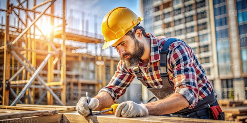 Строительный работник измеряет балки на месте. генеративный ИИ