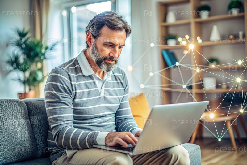 Человек учится онлайн дома на ноутбуке