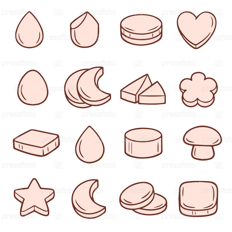 Набор розовых косметических губоккруглых, слезных и коничныхдля нанесения фундамента и порошка.Мягкие инструменты красоты пастельного цвета с гладким матовым отделением.Стиль Doodle