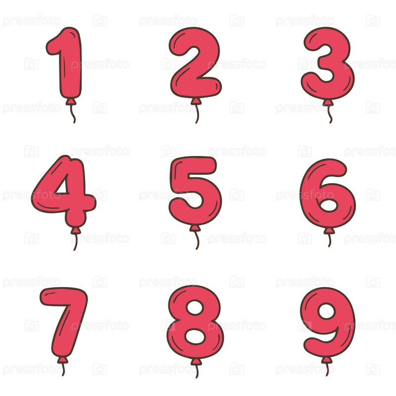 Шарики в форме номеров для детских детей день рождения. милый и позитивный декор ручным набором рисунков. красочная коллекция символов с линией чертежа клипарта. векторная иллюстрация