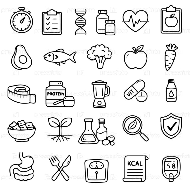 Иконка правильного набора питания.Еда, диета, диетолог.Векторная иллюстрация диетолога, нарисованная вручную