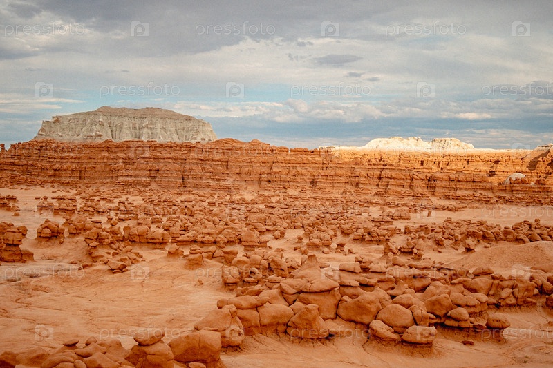 Яркий геологический пейзаж, демонстрирующий сюрреалистические песчаные спиры и витящие характеристики эрозии в Юте
