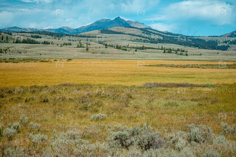 Тихий Йеллоустонский луг с далекой горной вершиной
