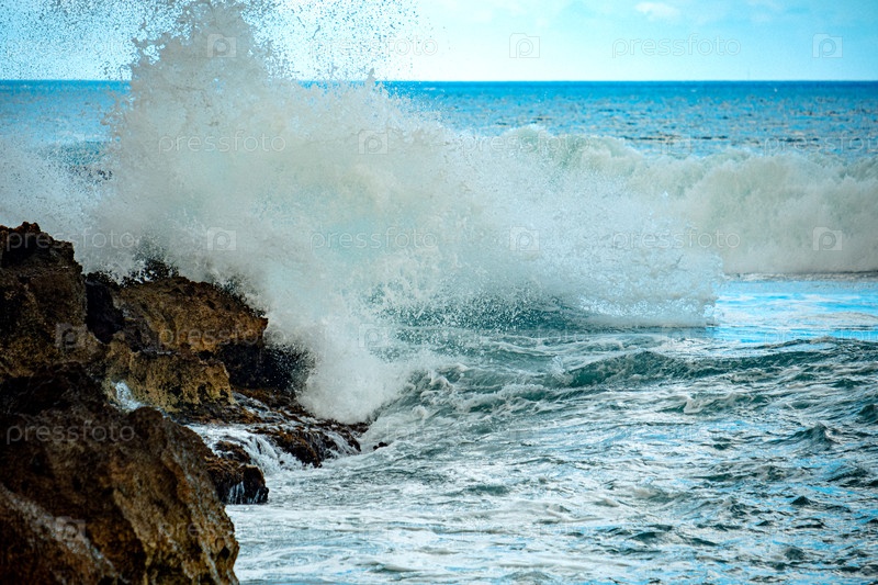 Непрекращающиеся моря, разбивающие резкую береговую линию. свирепые серф-пуны против острых скал с дикой энергией