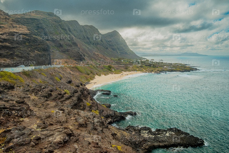 Сложные прибрежные дороги рядом с бурными океанскими водами и далекими горами