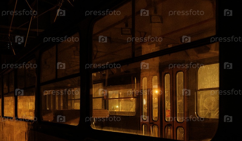 Спокойная ночная сцена, захватывающая ностальгический городской транзит с теплым освещением и утепленной мебелью
