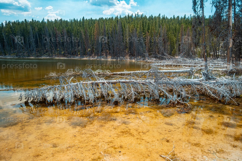 До сих пор затопленная водой область, где распад встречает блестящие отражения среди естественных лесных окружений