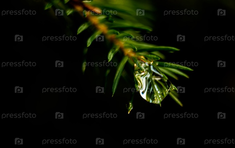 Естественное омолаживание, продемонстрированное через одиночные капли дождя на сосны среди безмятежной лесной обстановки