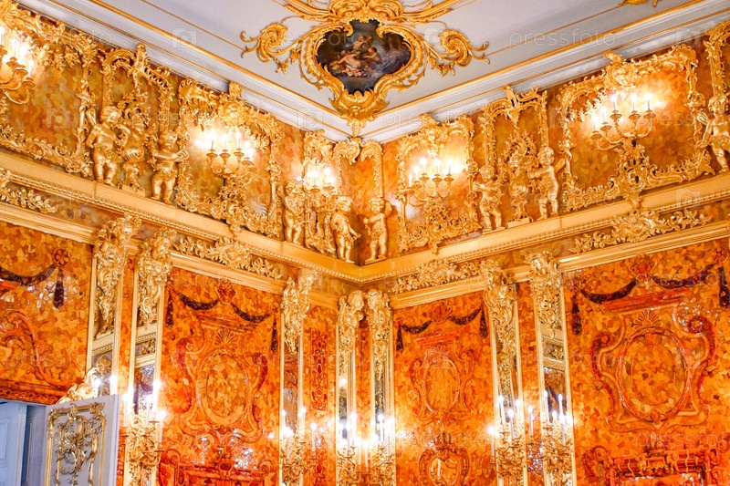 Санкт-Петербург, Россия - июль 2025 года: интерьер янтарного зала Екатерининского дворца.Царское село, Пушкин