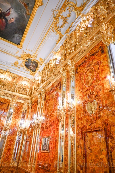 Санкт-Петербург, Россия - июль 2025 года: интерьер янтарного зала Екатерининского дворца.Царское село, Пушкин