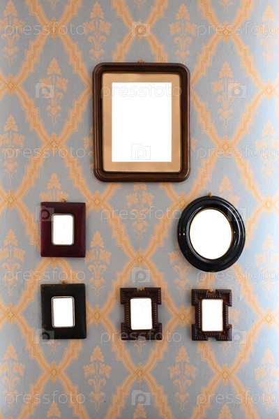 Пустые винтажные рамы на старой комнате с обоями