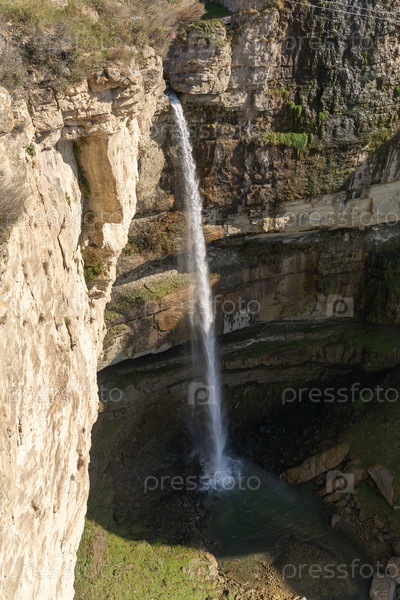 Пейзаж Тоботского водопада на Хунзакском плато в Дагестане