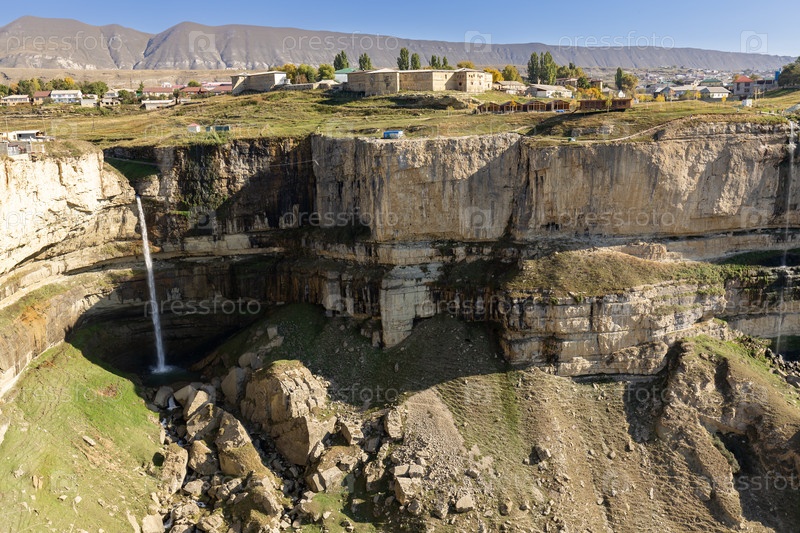 Пейзаж Тоботского водопада на Хунзакском плато в Дагестане