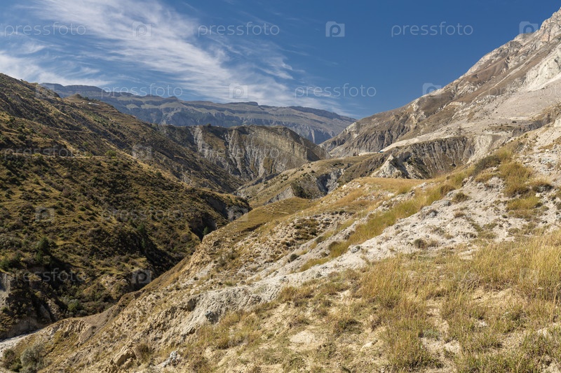 Панорамный вид осеннего пейзажа в горах Дагестана