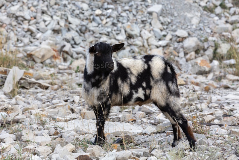 Близкий вид ибекса, Козерога на скалистом склоне горы