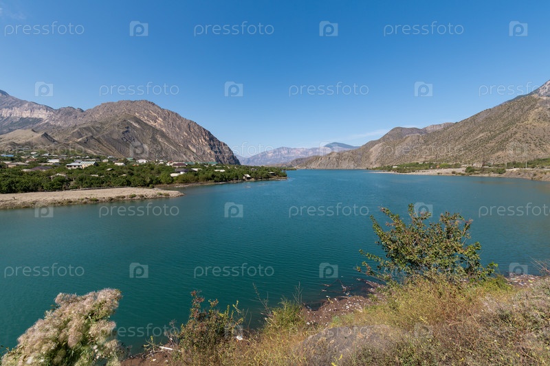 Панорамный вид на Ирганайское водохранилище в горном районе Республики Дагестан