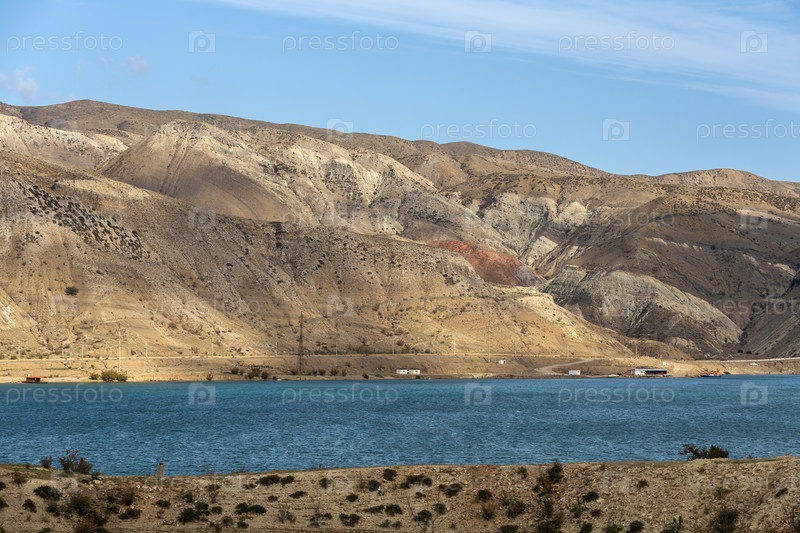 Панорамный вид на Чиркейское водохранилище в горах Республики Дагестан