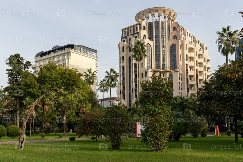 Вид на современные жилые дома в курортном городе Батуми, Грузия