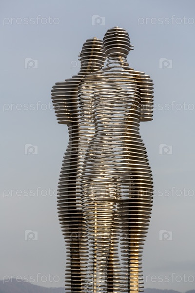 Футуристическая инсталляция движущихся скульптур Али и Нино в Батуми, Грузия