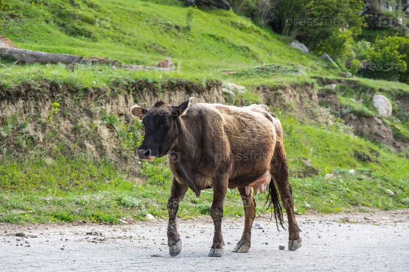 Корова в ущелье Баксан в Кавказских горах России