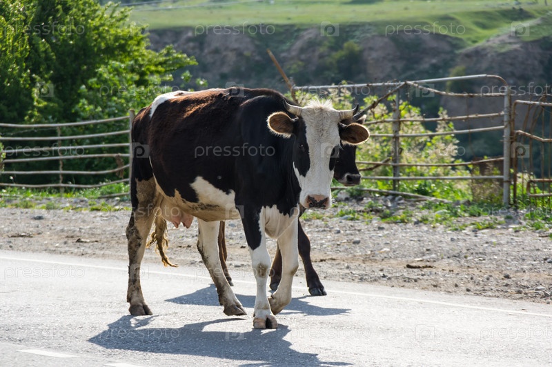 Стадо коров в ущелье Баксан в Кавказских горах России