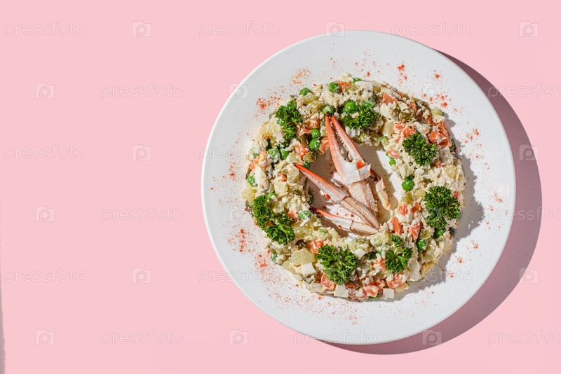 Салат оливкового сорта с русским крабом