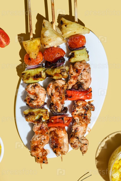 Кебабы с курицей и овощами на колючке