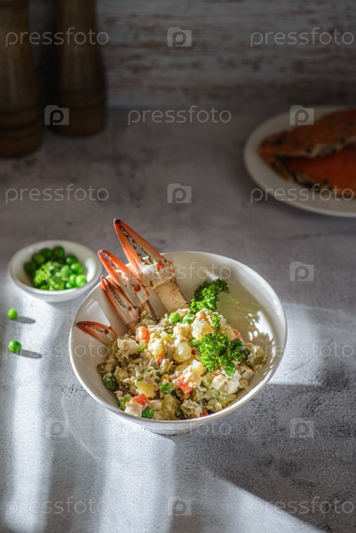 Салат оливкового сорта с русским крабом