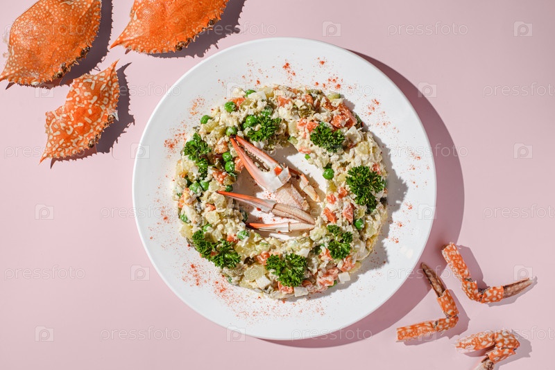 Салат оливкового сорта с русским крабом