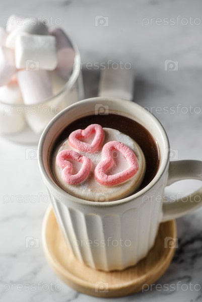 Горячий шоколад с сердечками из зефира