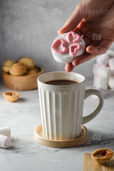Горячий шоколад с сердечками из зефира