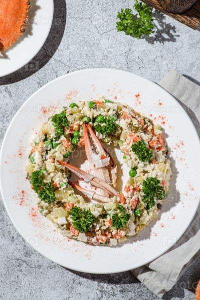 Салат оливкового сорта с русским крабом