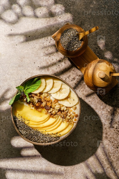 Чаша для смузи с банановой гранолой и семенами манго