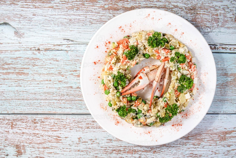 Салат оливкового сорта с русским крабом