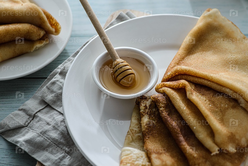 Крейпы с медом на деревянном фоне