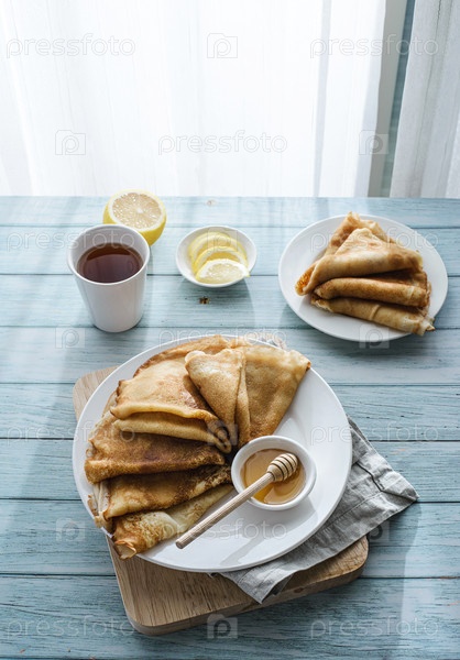 Крейпы с медом на деревянном фоне