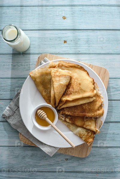 Крейпы с медом на деревянном фоне