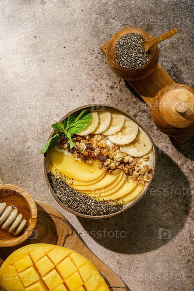 Чаша для смузи с банановой гранолой и семенами манго