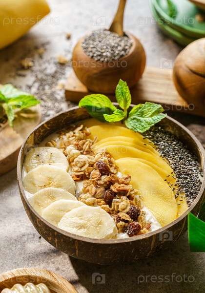 Чаша для смузи с банановой гранолой и семенами манго