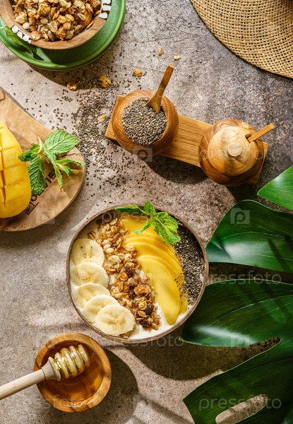 Чаша для смузи с банановой гранолой и семенами манго