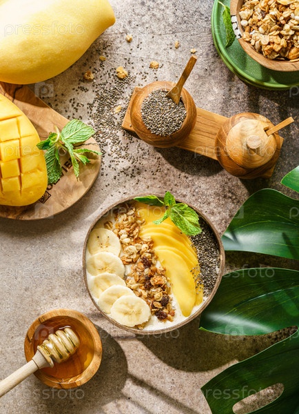 Чаша для смузи с банановой гранолой и семенами манго